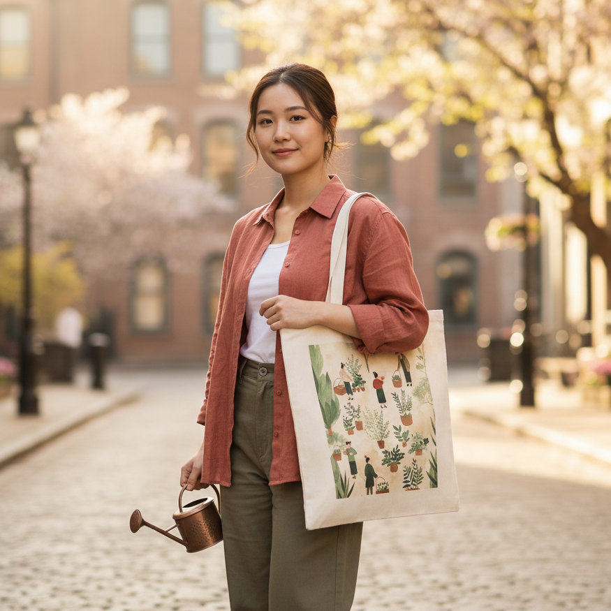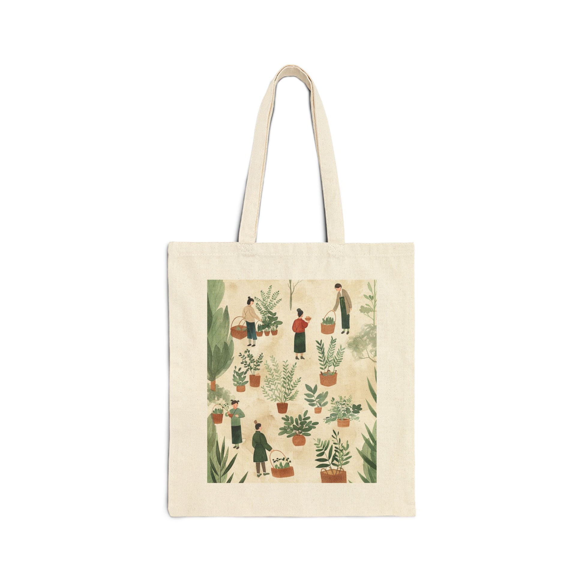 這款環保袋重現了《採藥圖》的意境:穿著交領袍衫的人們,或彎腰採擷,或提籃而行,身邊圍繞著蕨類、薄荷、艾草等春日植物。他們知道何時何地採集何種植物,懂得與自然和諧共處,只取所需。