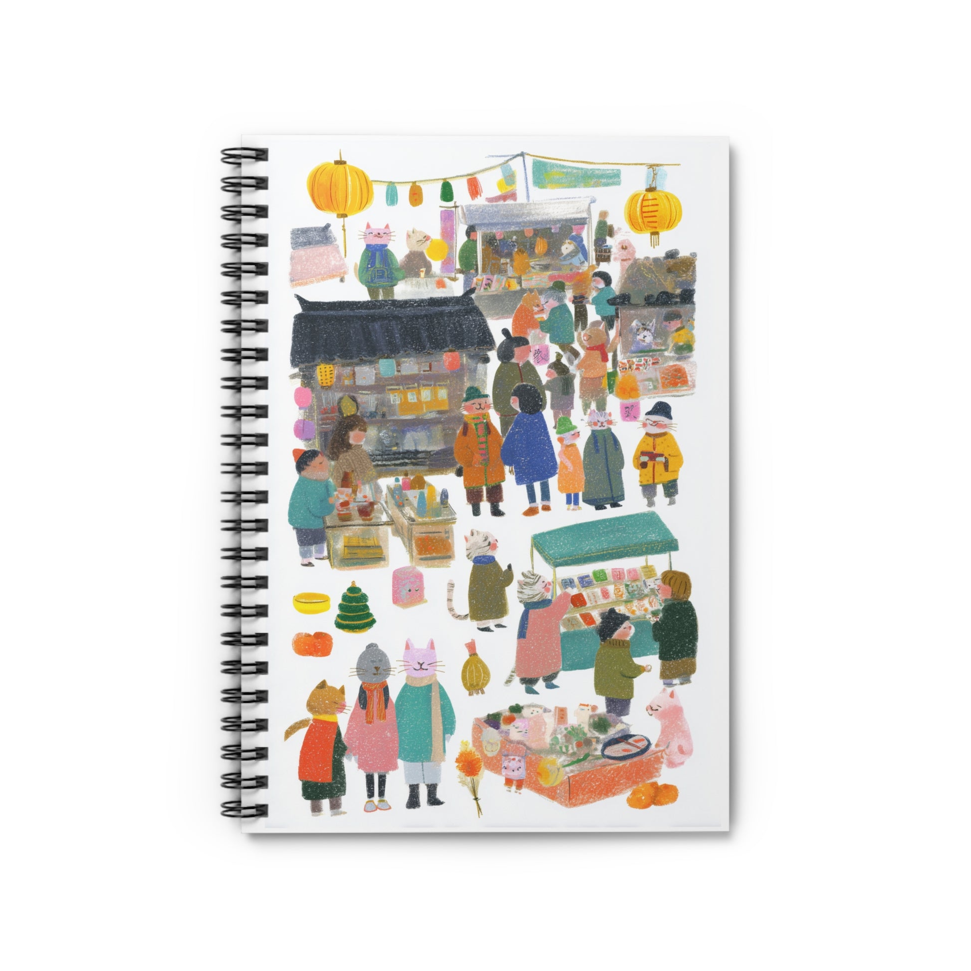 Celebrate creativity and organization with this charming Spiral Notebook! Featuring a whimsical illustration of a bustling market scene, this notebook evokes a warm, inviting vibe perfect for capturing your thoughts, ideas, or inspirations. It's the ideal companion for students, artists, or anyone who loves to jot down notes in style. The 6" x 8" size makes it easy to carry in your bag, ensuring you're always prepared to write. Whether for back-to-school, special occasions like birthdays or holidays, or simply for your personal journal, this notebook adds a splash of joy to everyday tasks. Its unique design is sure to delight anyone who appreciates playful aesthetics and functional elegance.