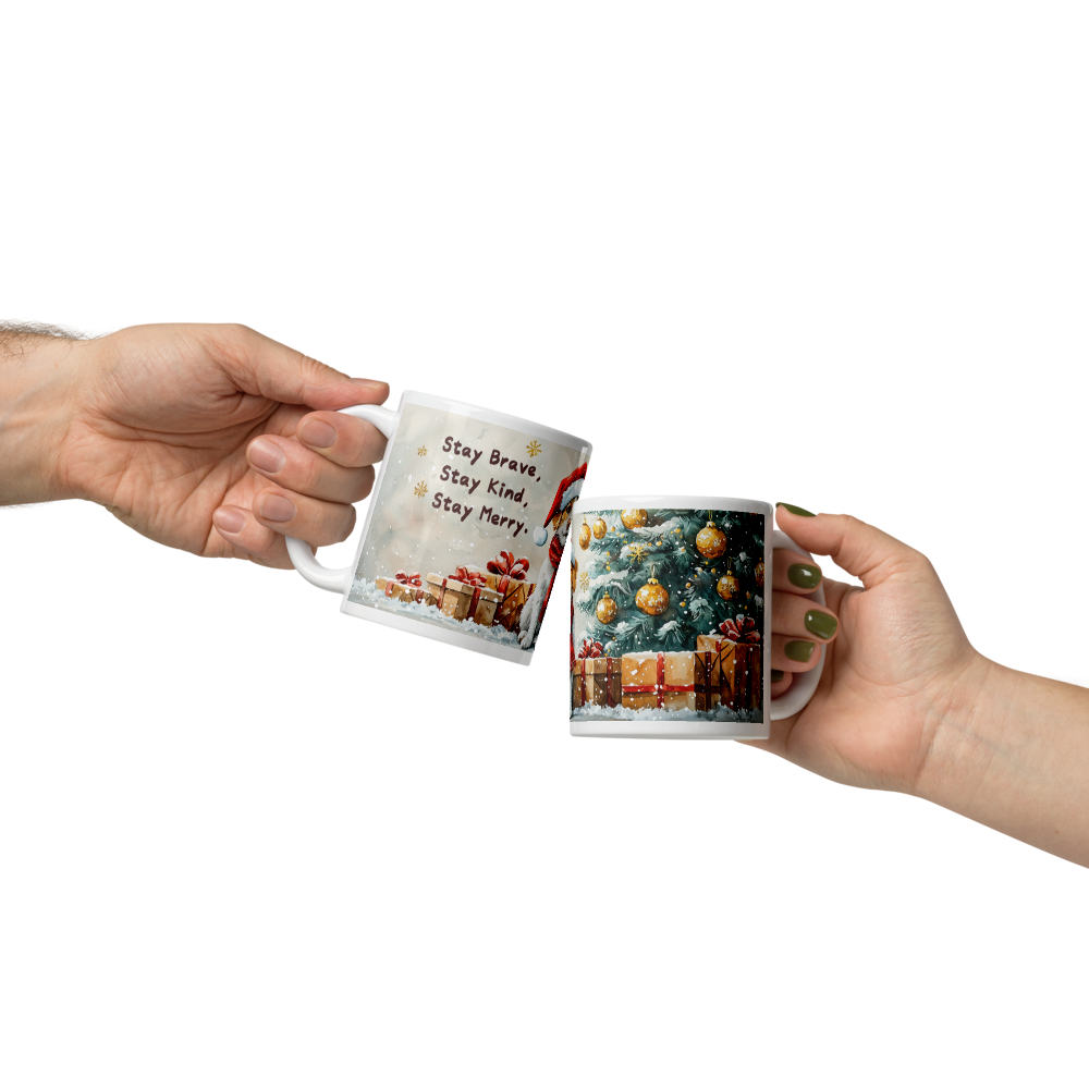 Perfect for coffee, cocoa, or tea lovers who believe in staying kind, brave, and joyful through every season.