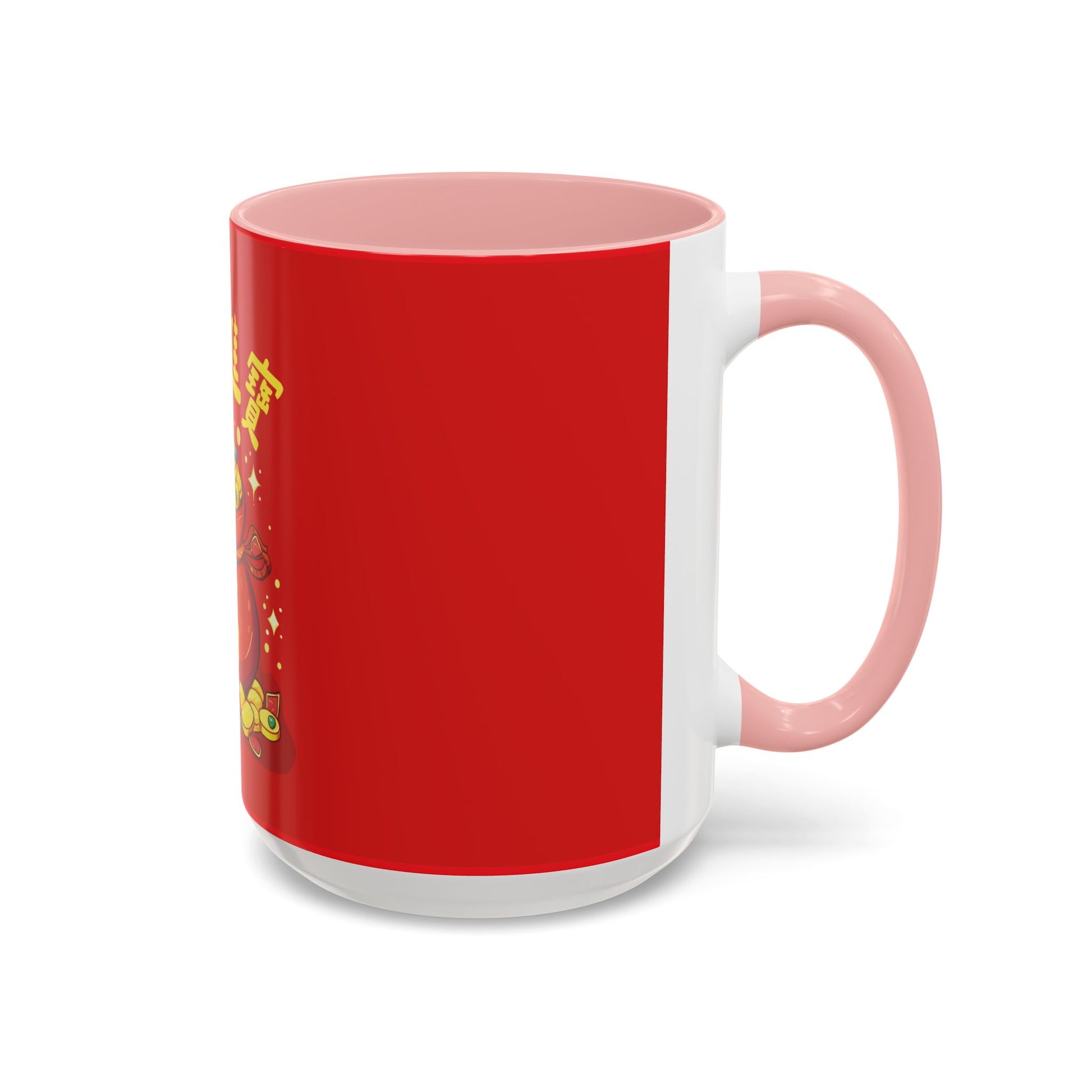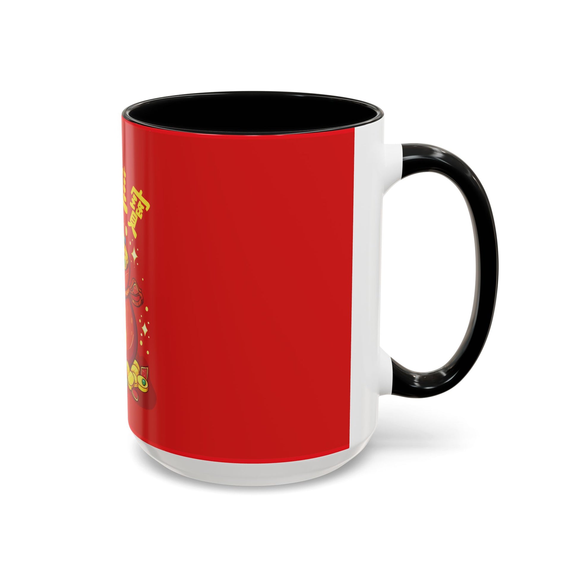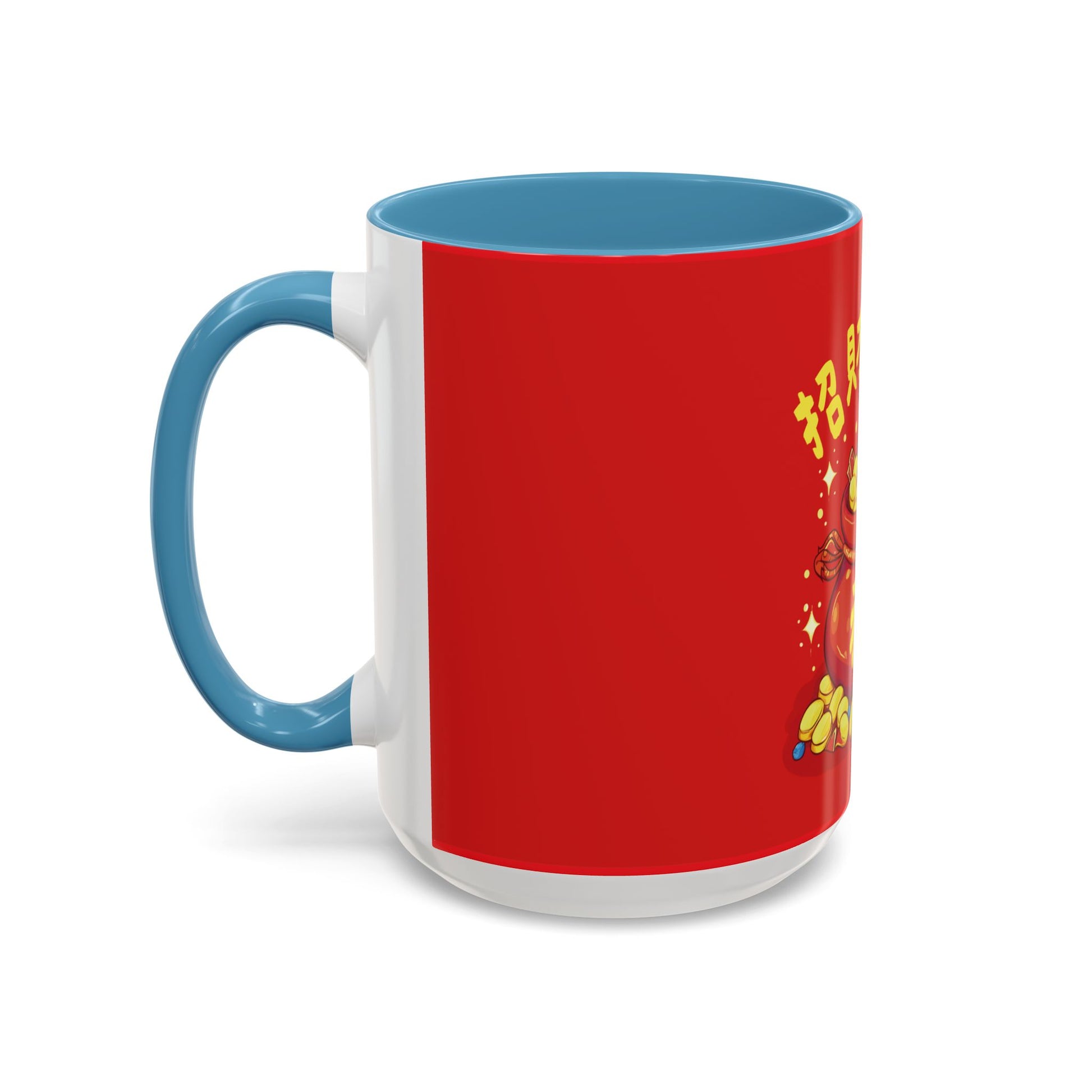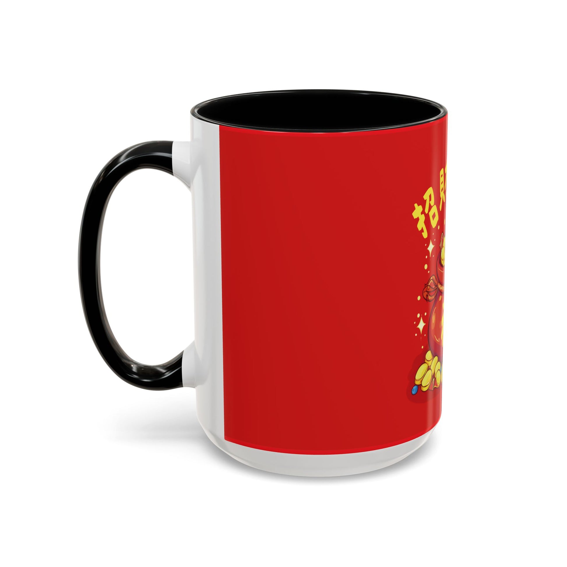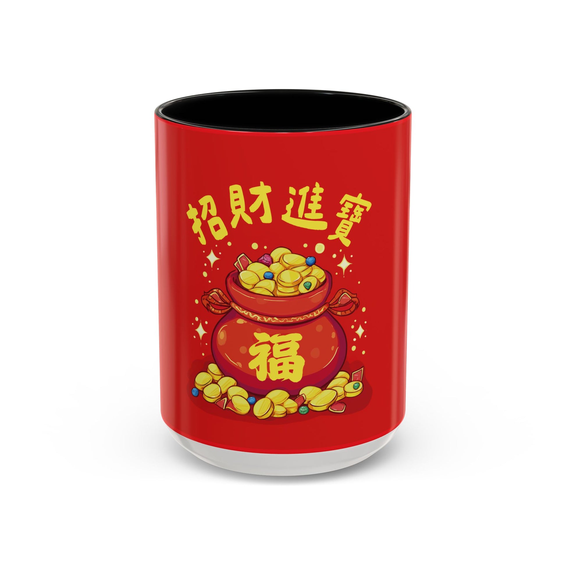 This bright red mug, featuring the golden “Fortune Bag,”