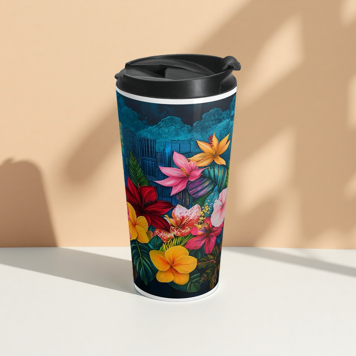 Thai Tropical Garden Travel Mug | Urban Farming Reusable Coffee Cup | Eco-Friendly Stainless Steel Tumbler | Sustainable Gift
